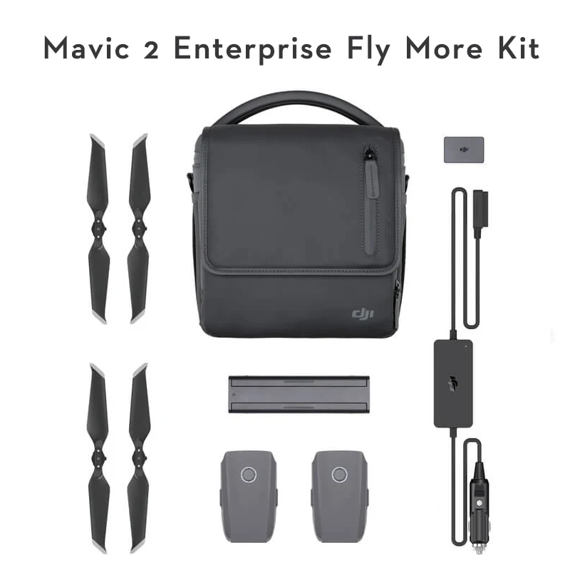 The fly more kit is a single-shoulder bag dedicated for Mavic 2 Enterprise series, which is easy for storage The kit includes a intelligent self-heating battery, a battery-charger converter, two pairs of low-noise propellers, a vehicle-mounted charger, a battery manager, and other accessories for easier operation.