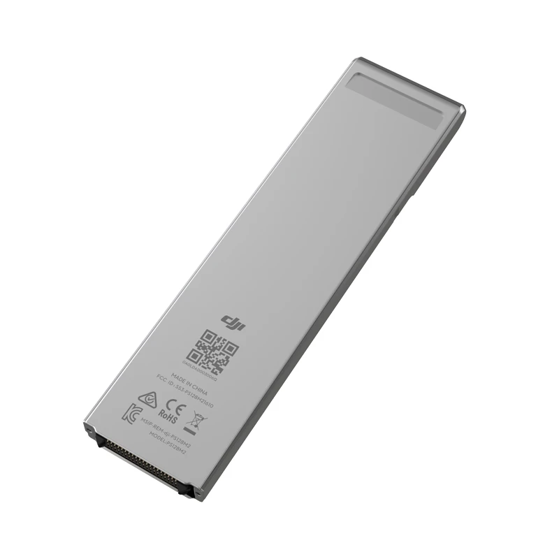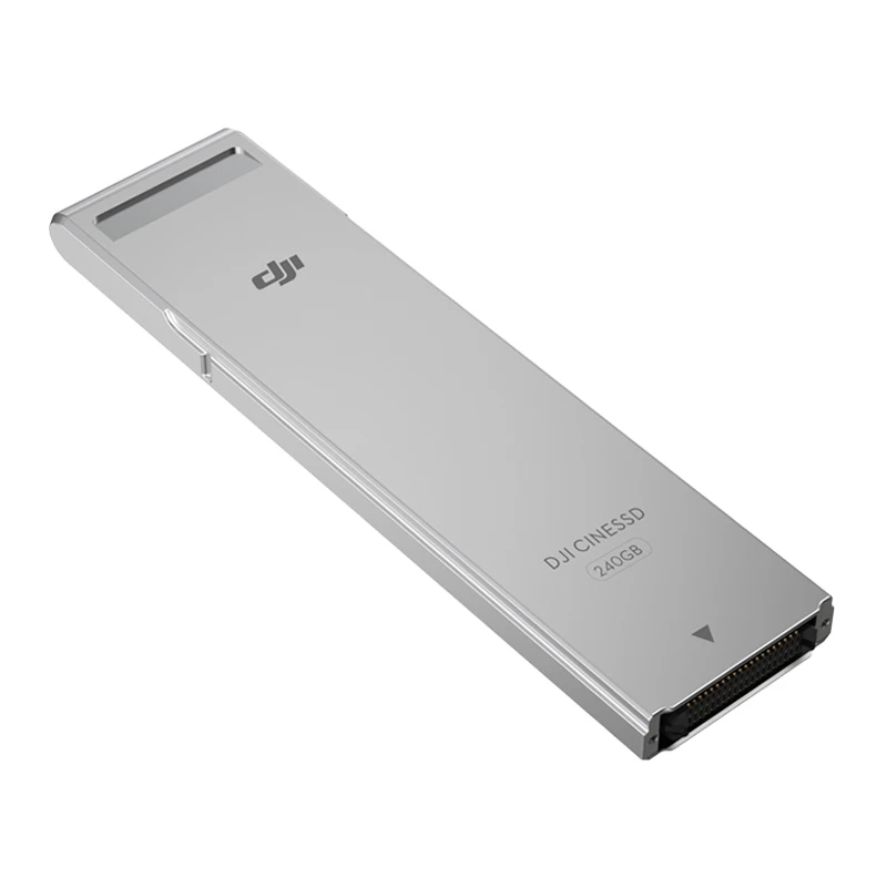 DJI CINESSD uses an NVMe logical device interface specification, features four PCI Express[1]ports and supports FAT32/exFAT[2] file formats. It comes in 120GB,240GB and 480GB. When using a 240GB or 480GB CINESSD, the Inspire 2 can record videos at write speeds of up to 4.2Gbps, providing enough data to meet demanding filmmaking needs.