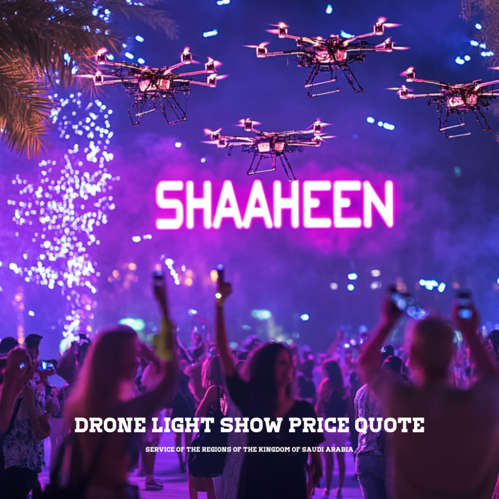 Shaaheen Drones, drone light shows, professional drone displays, sky illumination with drones, drone services in Saudi Arabia, event drone displays.